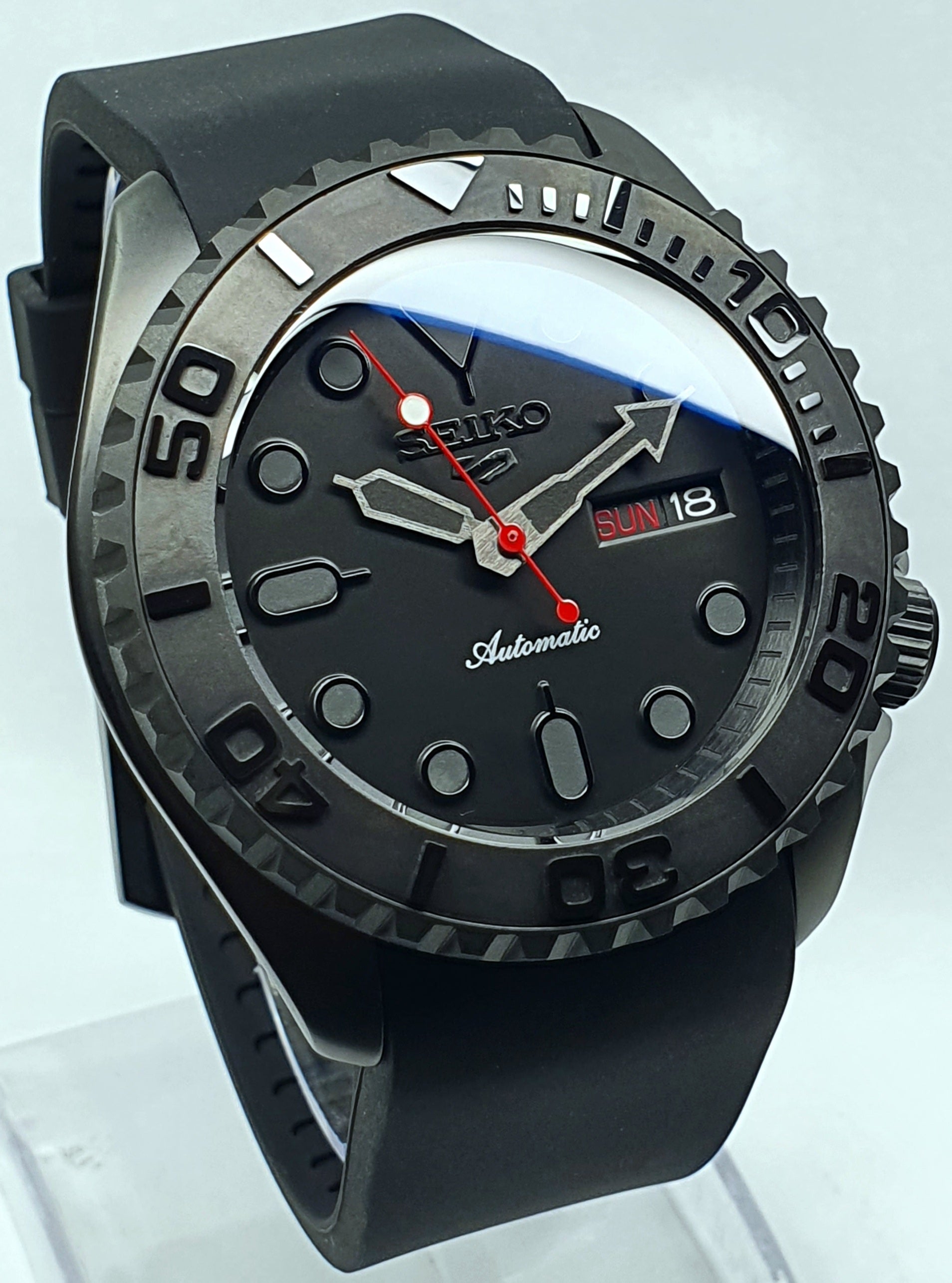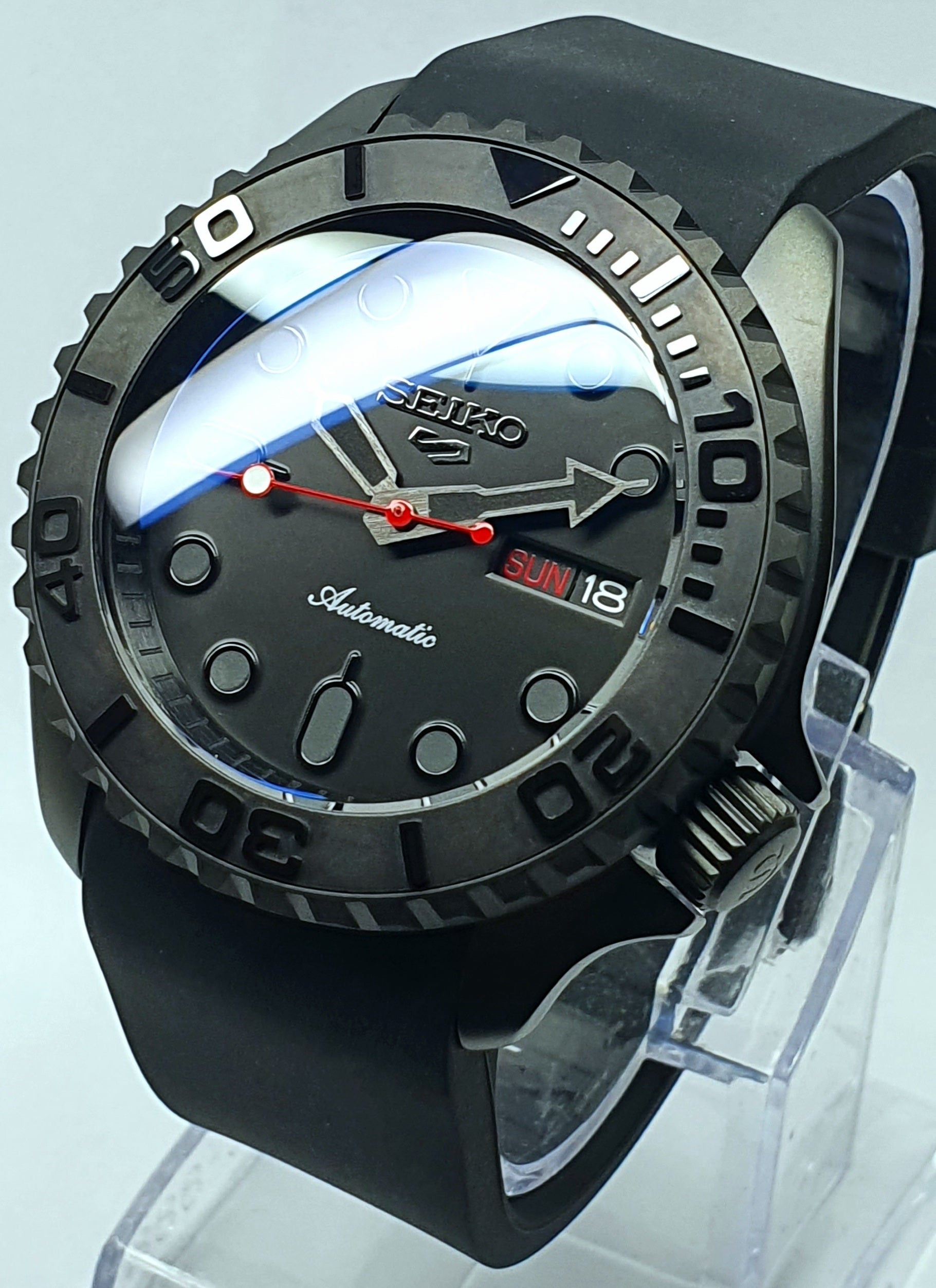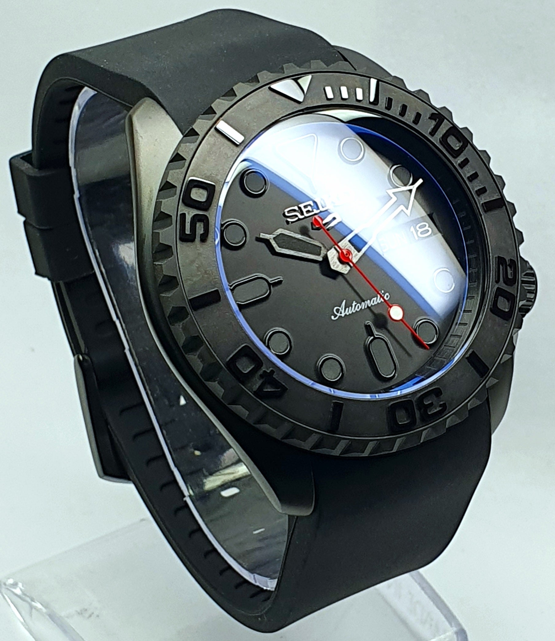 "Custom Colour Accents' SKX007 Divers Watch Seiko NH36 Automatic 'STEALTH aka GHOST MOD' Premium Qaulity PVD Case Sapphire Crystal